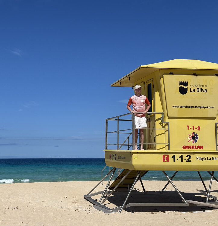 Omad arrive à Fuerteventura, entre désert et océan. Le sable s’étend à perte de vue, le vent guide ses pas.